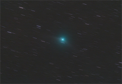 has an anti-tail made up of dust in PA 310 degrees. Image was median combined to bring out the details in comet coma and tails.
