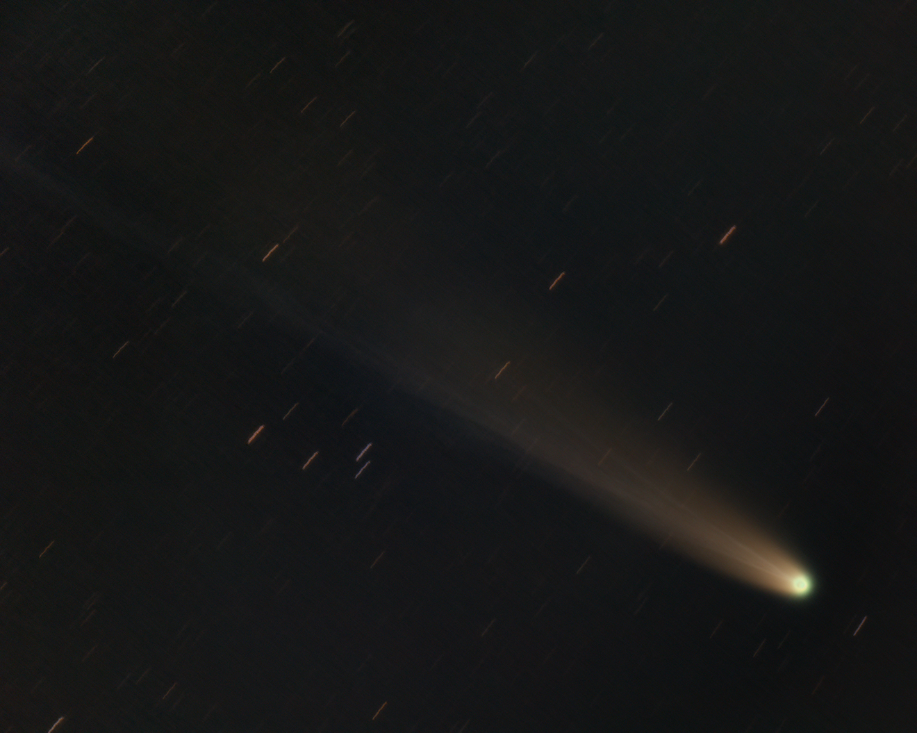 Exposure time was 23 minutes (23x60 seconds). The tail length is about 7 degrees. Image scale is 18.0 arc sec/pixel.