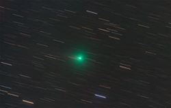 Canon EOS 6D. Exposure time was 30x60 seconds at ISO 3200. Image scale is 4.4 arc sec/pixel. Image was median combined to bring out the details in comet coma.