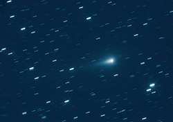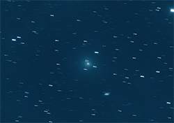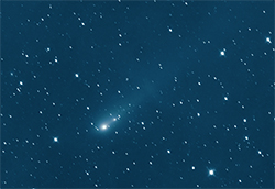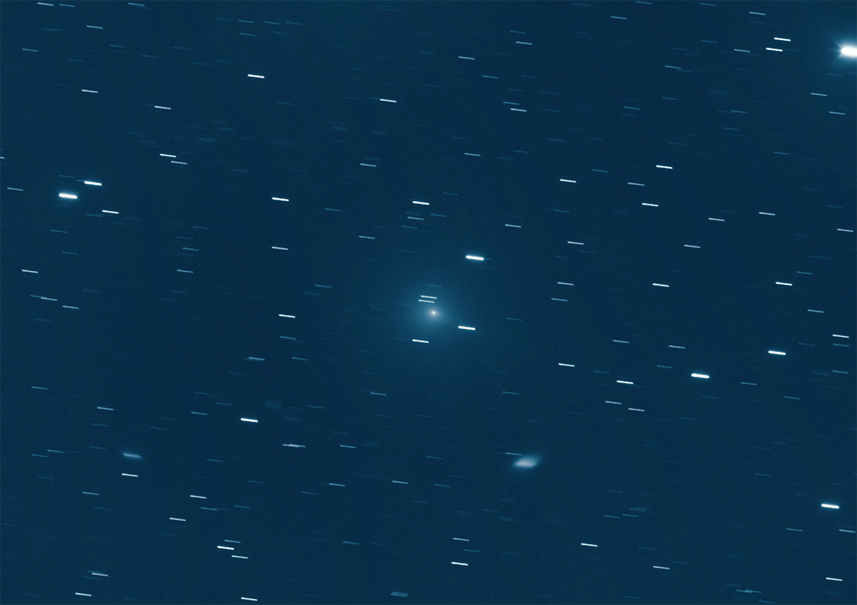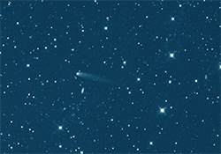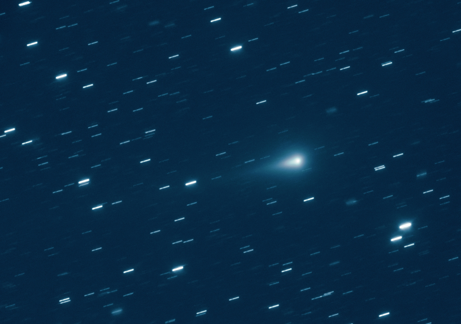has an anti-tail made up of dust in PA 310 degrees. Image was median combined to bring out the details in comet coma and tails.