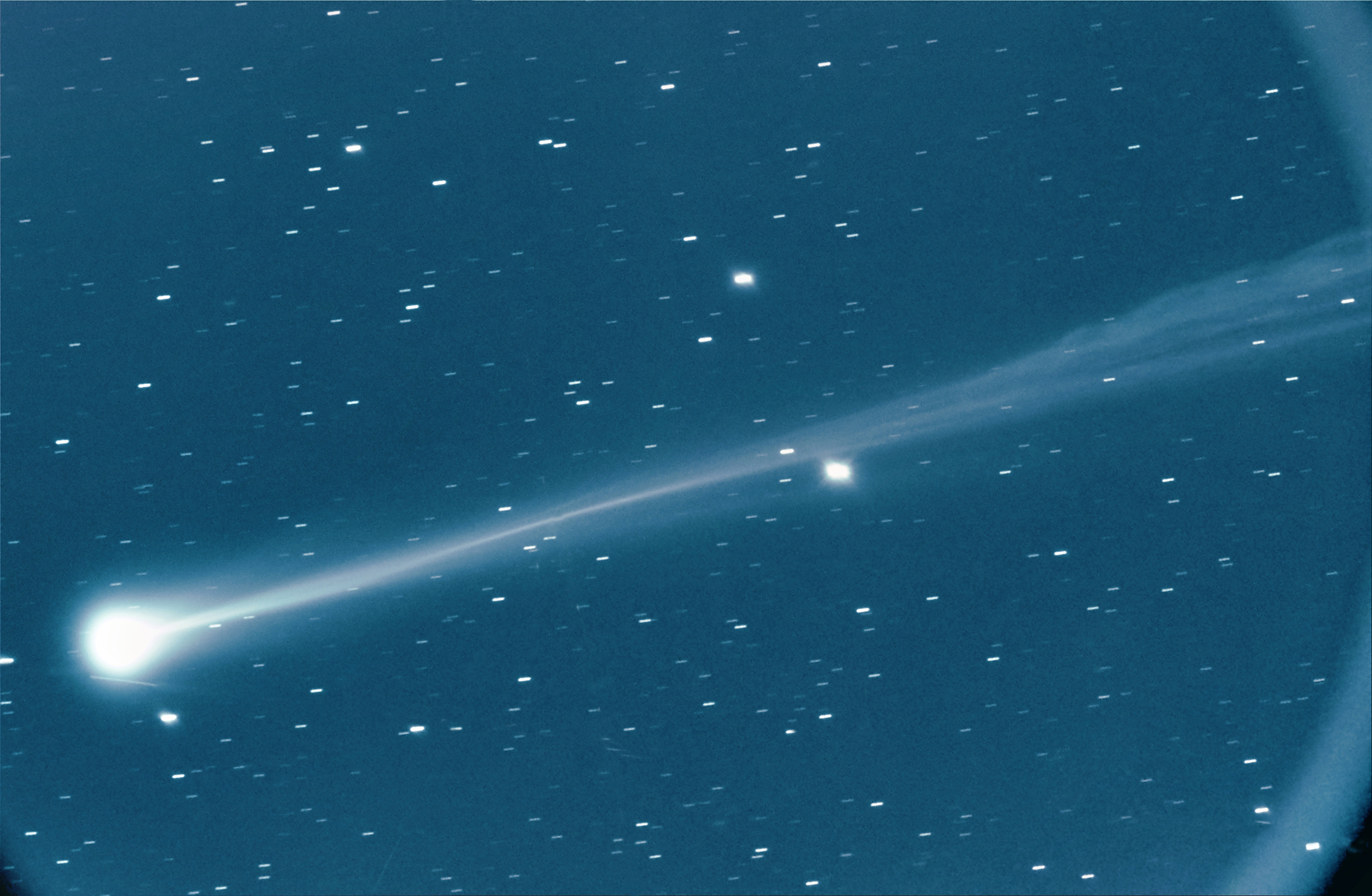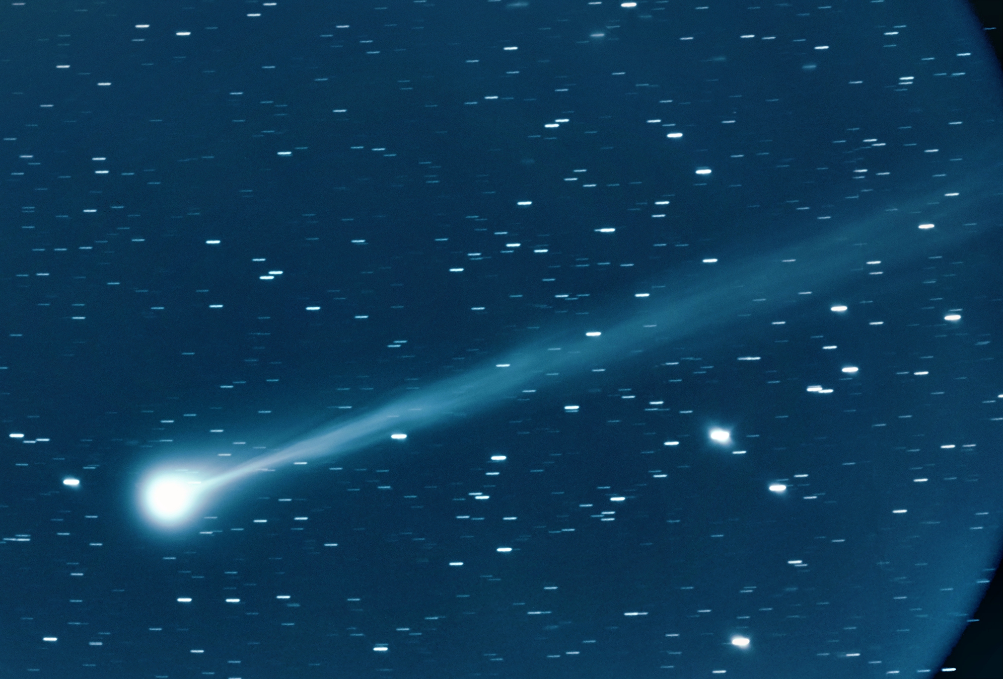 Exposure time was 8 minutes (16x30 seconds). Image scale is 1.46 arc sec/pixel. The comet was only 15 degrees above the horizon.