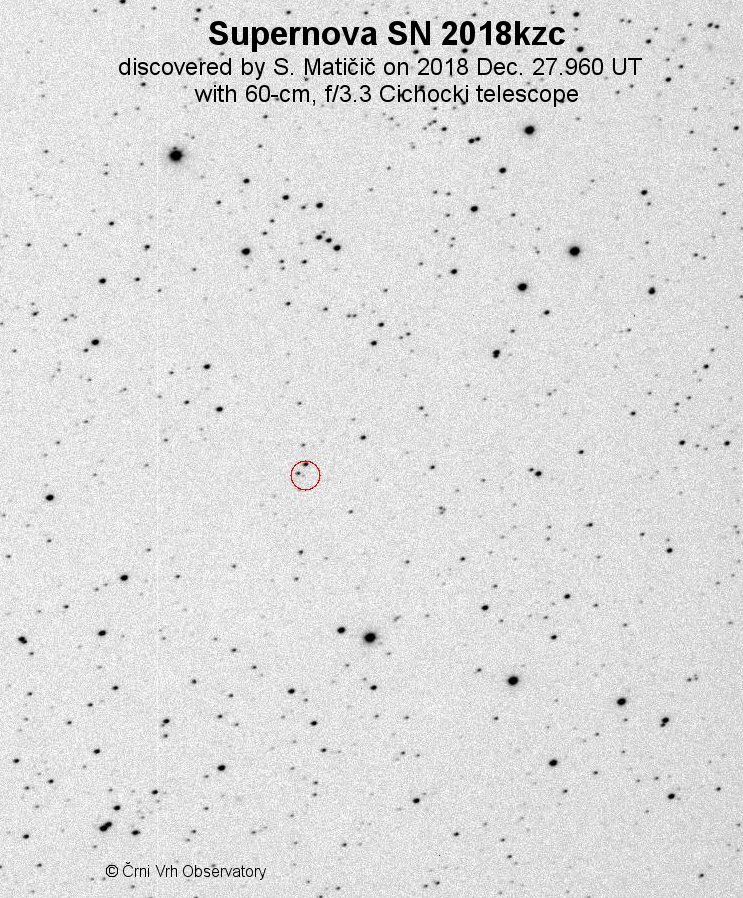 Discovery of supernova SN 2018kzc (December 27, 2018)