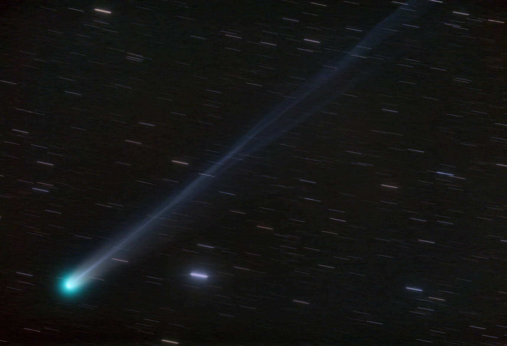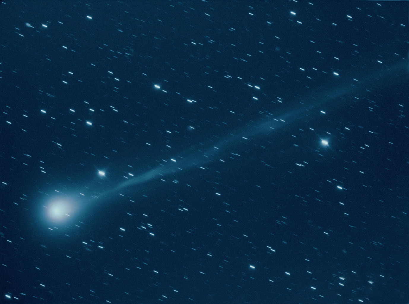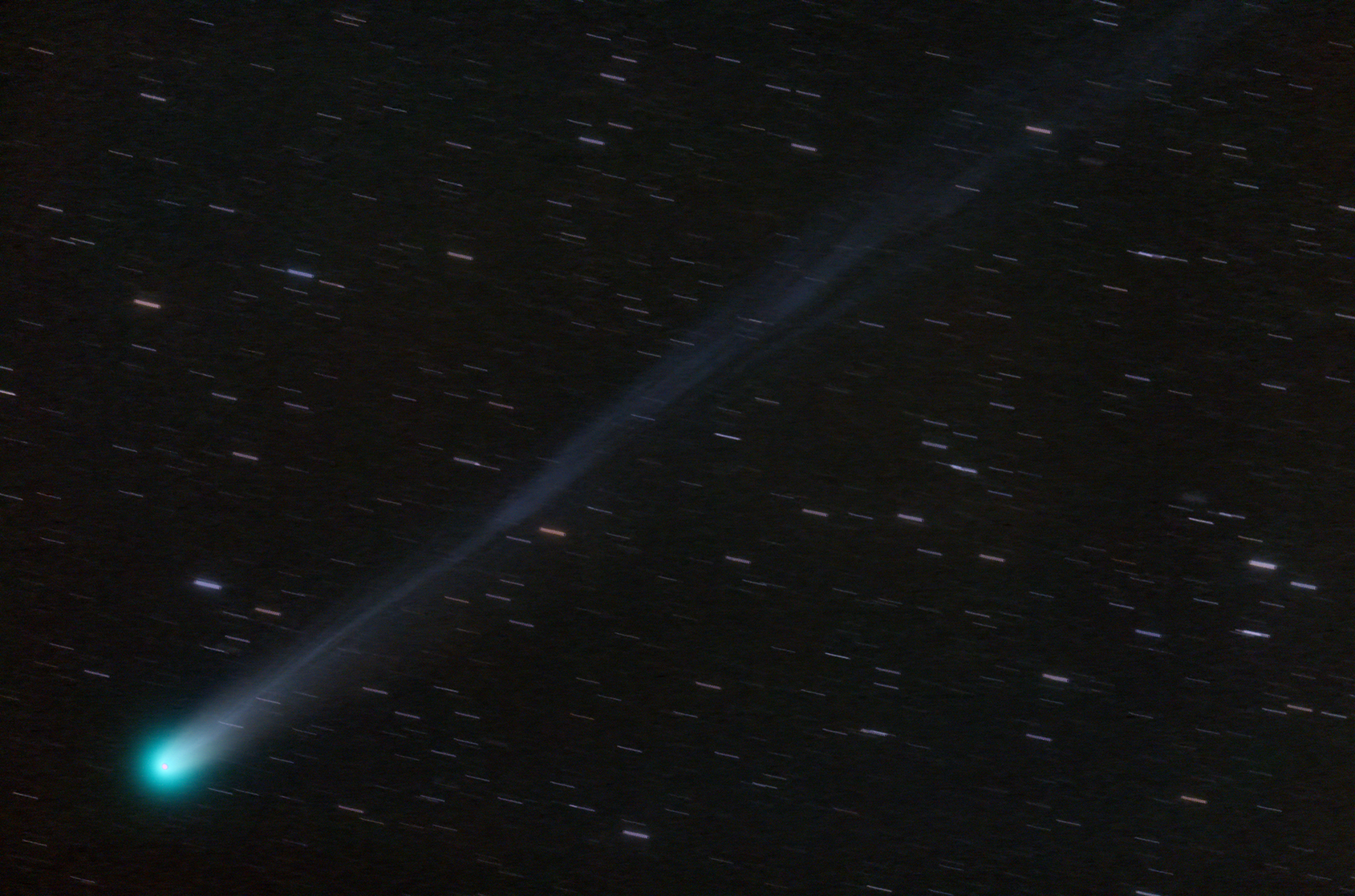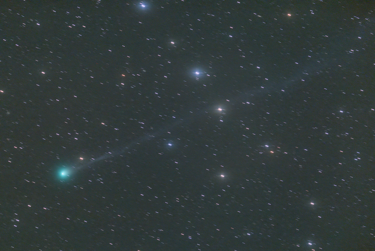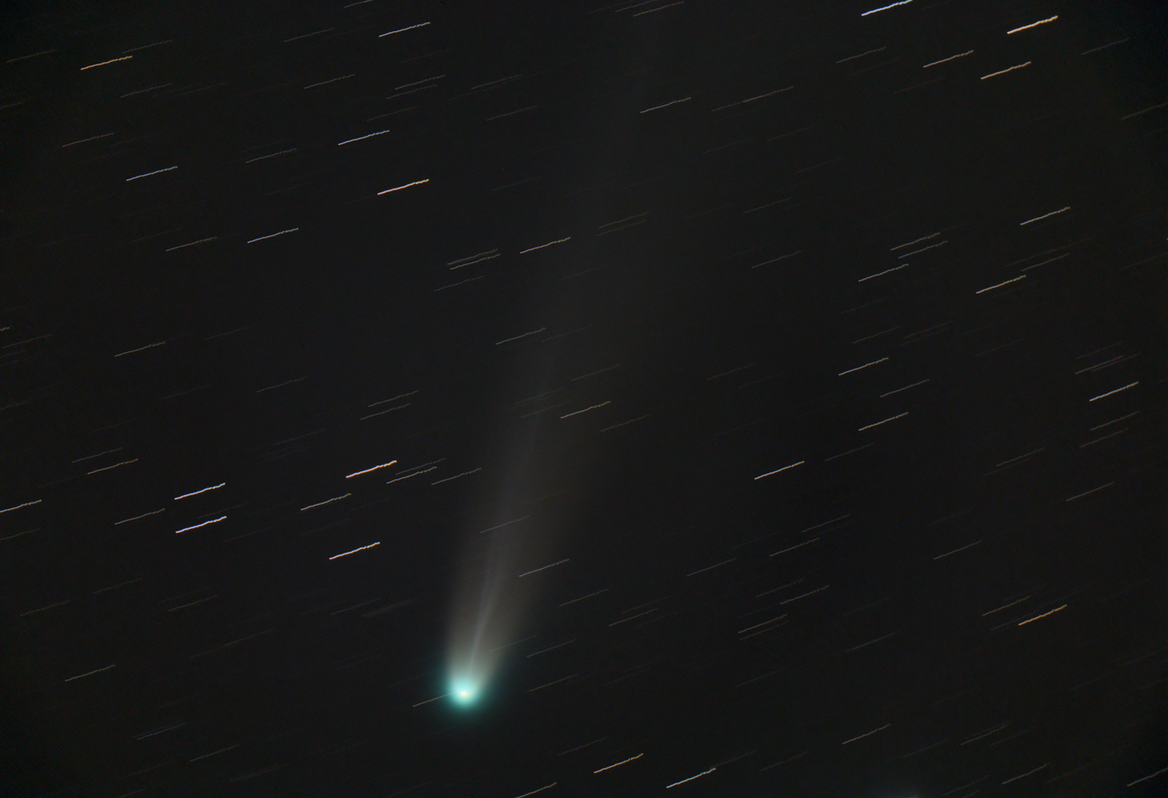 Exposure time was 23 minutes (23x60 seconds). The tail length is about 7 degrees. Image scale is 18.0 arc sec/pixel.