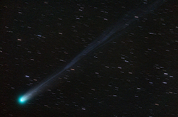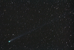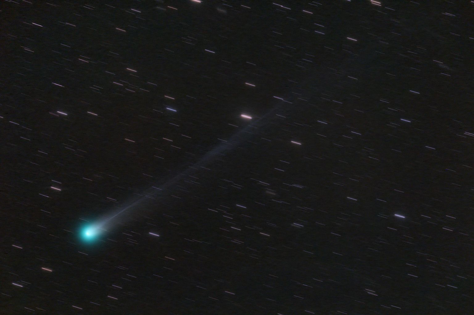 Exposure time was 28 minutes (28x60 seconds). Image scale is 5.04 arc sec/pixel. The comet has an ion tail about 1.5 degree long.